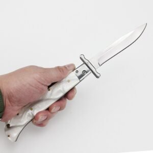 8,75 AKC Blue Branch Titanweiße Muschel Stiletto Springmesser