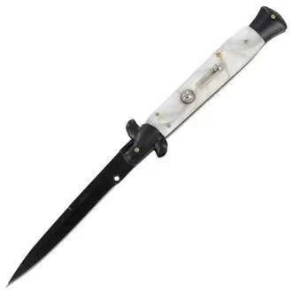 8,75 Zoll schwarzes italienisches Stiletto-Taschenmesser mit Schalter, schwarze Perle