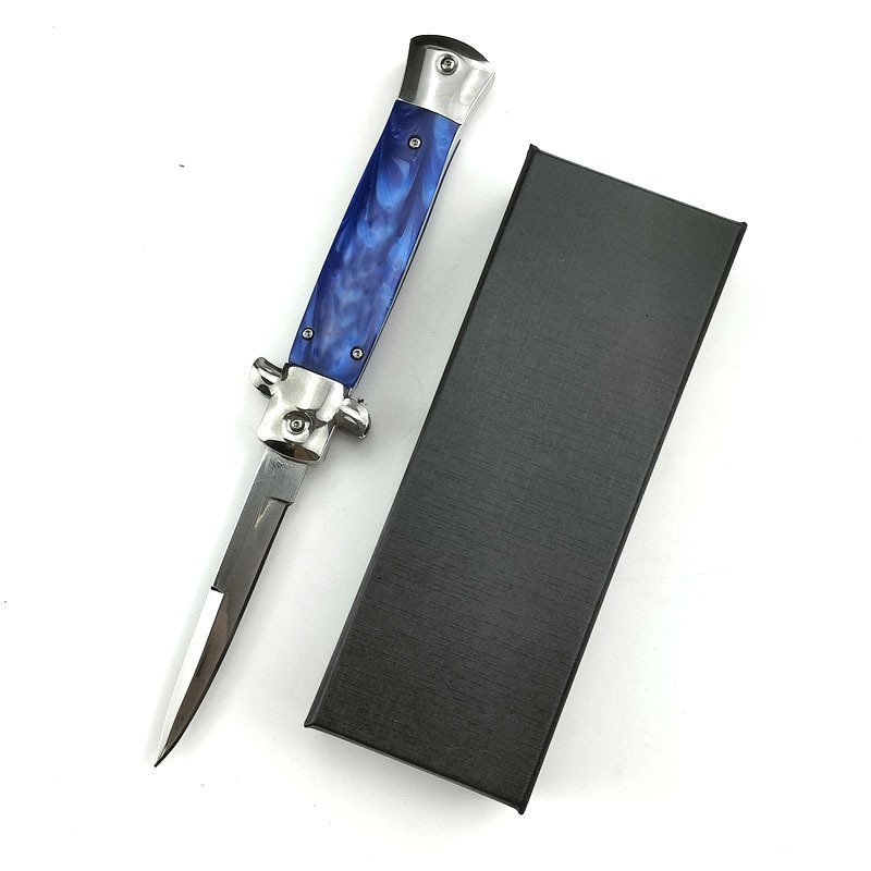 8,75 Zoll italienisches Stiletto Switch Kris Blade Fickmesser Blau